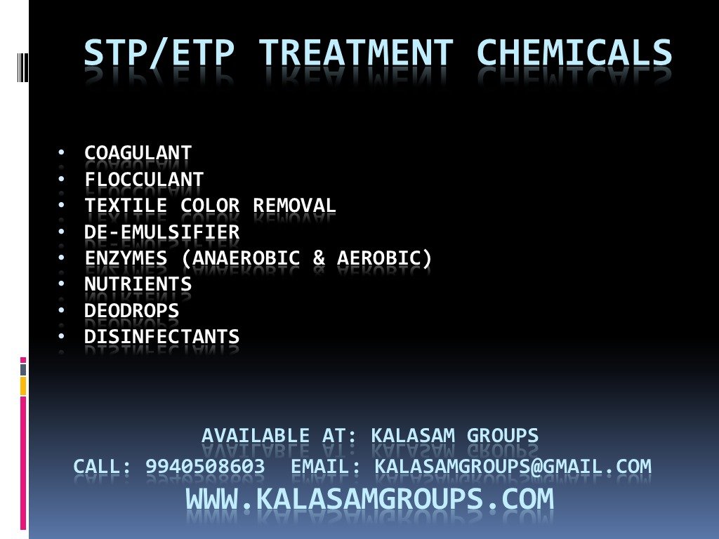 Kalasam Groups specialized in Chemistry Lab Chemicals & equipment, RO Treatment Chemicals, Water Testing Chemicals & Microbiological Parameters, Cooling Tower, Chiller & Boiler Water Treatment Chemicals & BioFuels for Energy conservations, STP/ETP Treatment Chemicals etc., Our team of experienced professionals is committed to delivering exceptional services and innovative solutions to meet your specific requirements.
